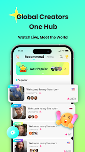 Pinka är en innovativ app för Android som erbjuder användarna en plattform för att upptäcka och dela autentiska live-streams från hela världen. Med en mångfald av innehåll, från resor och livsstil till kreativa samtal, finns det alltid något nytt att utforska. Pinka anpassar sig efter dina intressen och ger smarta förslag baserat på vad du tittar på, vilket gör att din feed alltid känns fräsch och relevant. Appen uppmuntrar interaktion genom chattfunktioner och möjligheten att skicka virtuella gåvor, vilket gör att användarna kan delta aktivt i live-eventen.